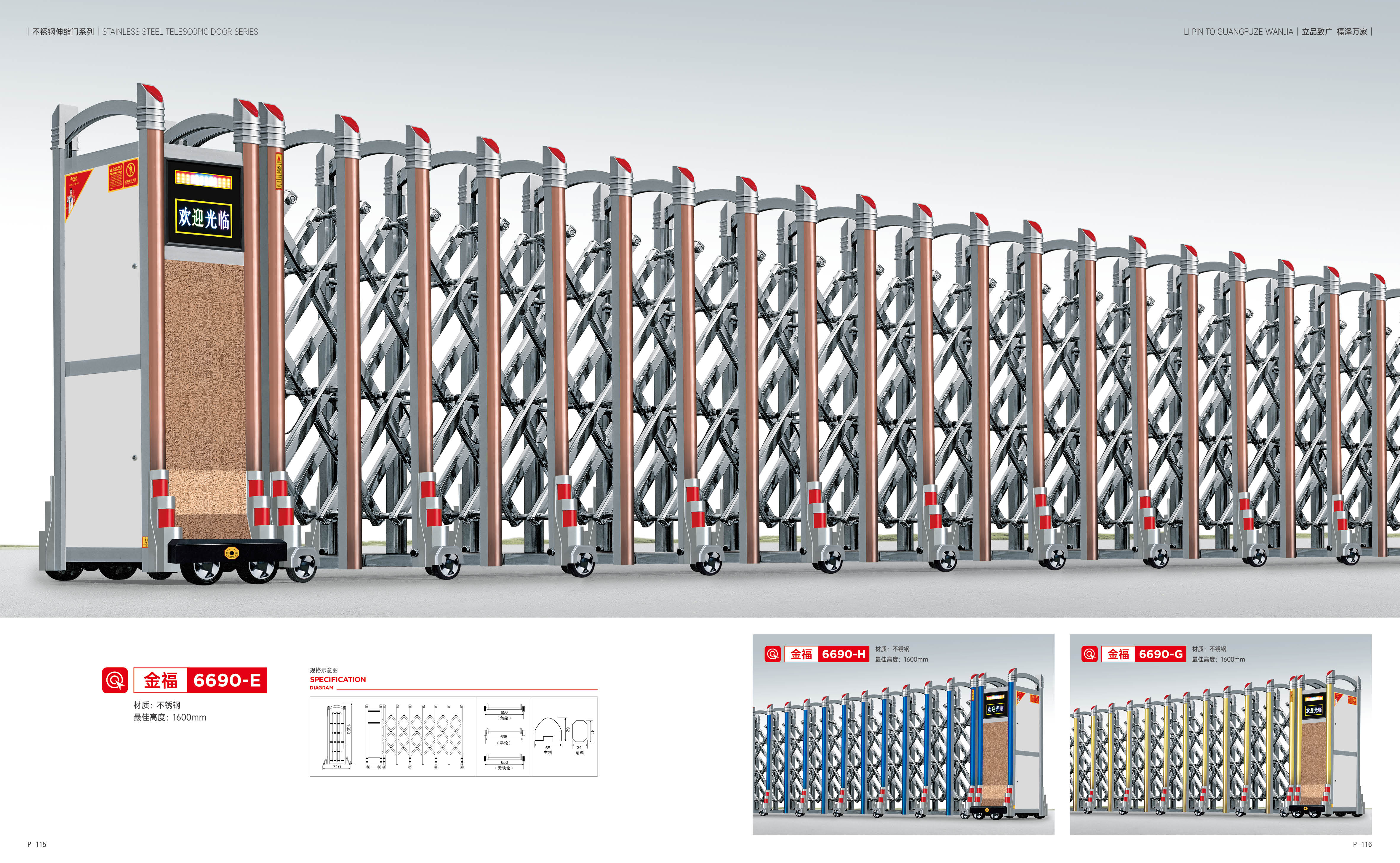 不銹鋼伸縮門是一種現(xiàn)代化的門窗產(chǎn)品,具有伸縮靈活、耐用、美觀、安全等特點。它采用不銹鋼材質制作,經(jīng)過特殊工藝處理,具有抗氧化、抗腐蝕、強度高等優(yōu)點,適用于各種場所的門窗裝飾。