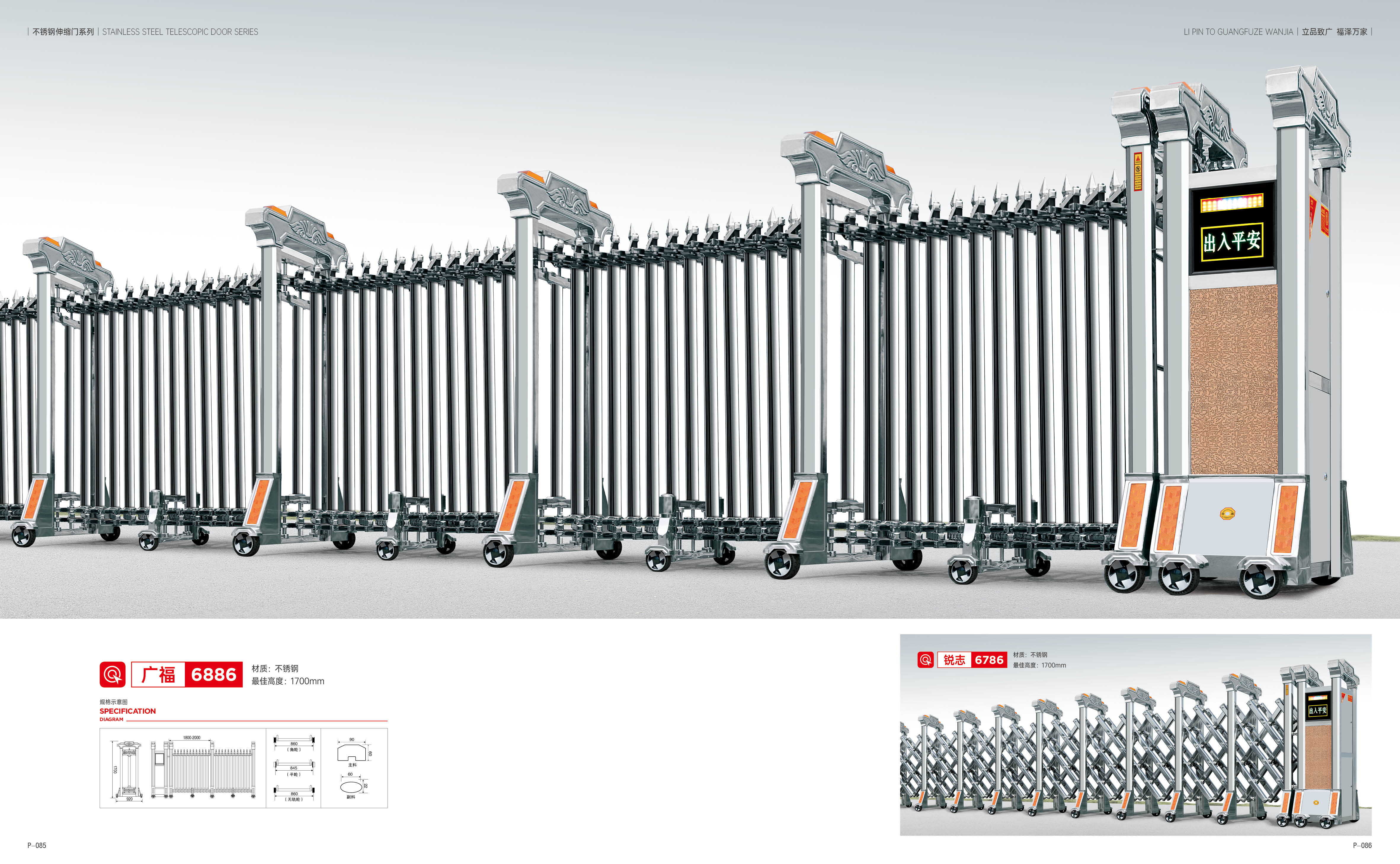 不銹鋼伸縮門具有多種款式和顏色可供選擇,可以根據(jù)客戶的需求定制。我們的產(chǎn)品不僅外形漂亮,而且操作簡(jiǎn)便、安全可靠。我們的不銹鋼伸縮門經(jīng)過(guò)嚴(yán)格的質(zhì)量檢測(cè),確保產(chǎn)品的質(zhì)量穩(wěn)定可靠,能夠長(zhǎng)時(shí)間使用而不易損壞。